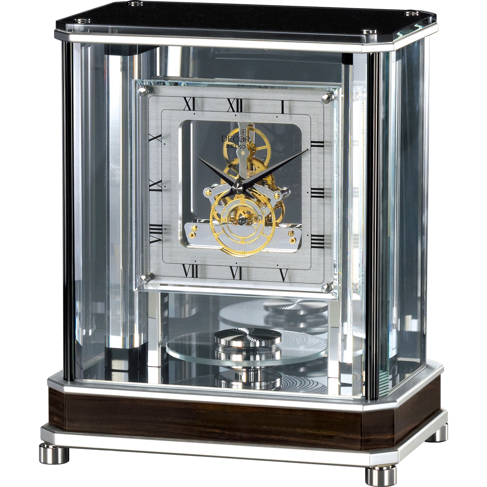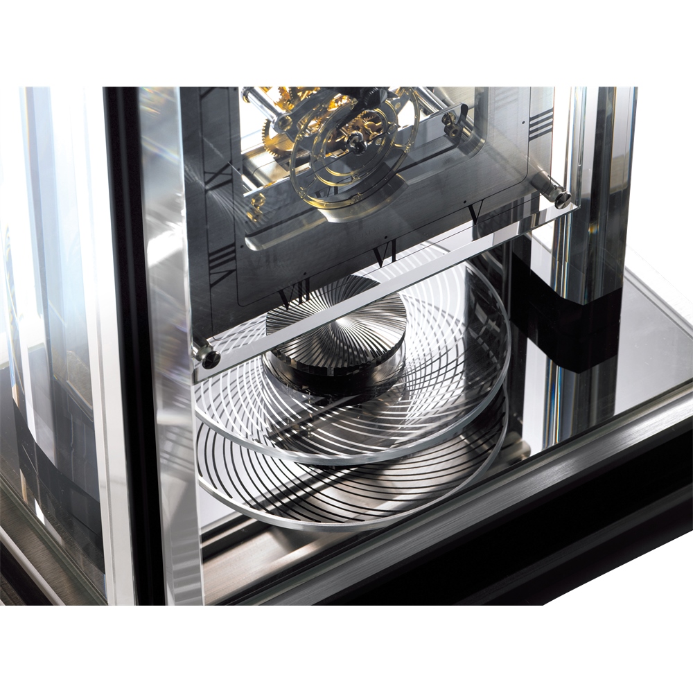 The rotating ornament is an expression of the eternal flow of time, with the quartz skeleton clock movement's precision gears and wheel train always in motion and visible through the glass casing, reminiscent of the swirling within the Milky Way