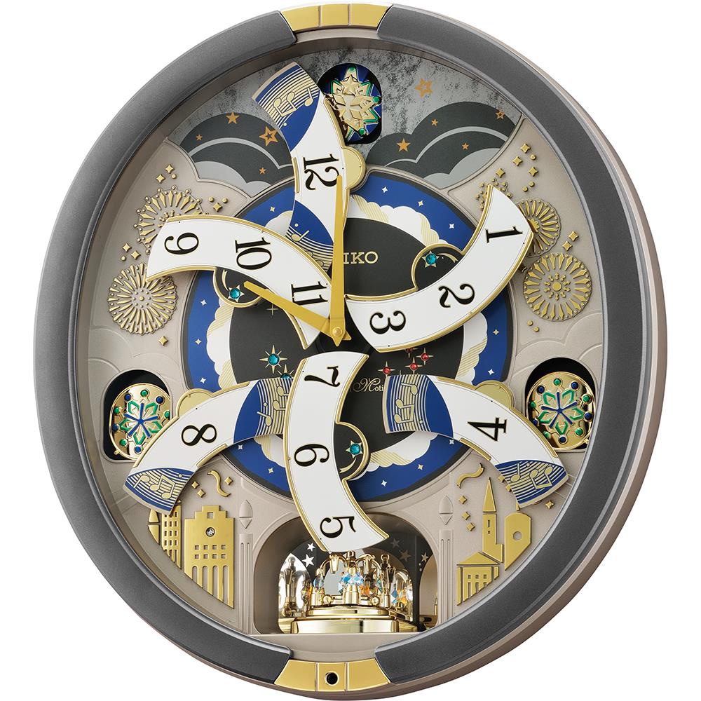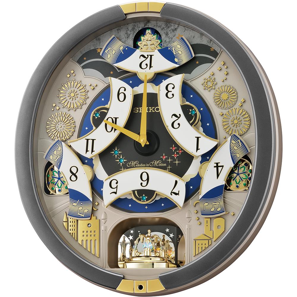On the hour dial opens and rotates while playing randomly one of 30 melodies with opening & ending sequence